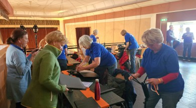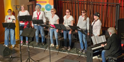 Danach eröffneten die sieben „Sing Tonixen“ mit einer spritzigen Interpretation des „Kriminaltango“ ihren Auftritt. Es folgten sowohl schmissige als auch ergreifende Stücke wie zum Beispiel „One fine day“, „A million dreams“ und „Gabriellas Sang“. Das beeindruckte Publikum hat den Sängerinnen und dem Chorleiter im Anschluss noch sehr anerkennende Worte geschenkt.